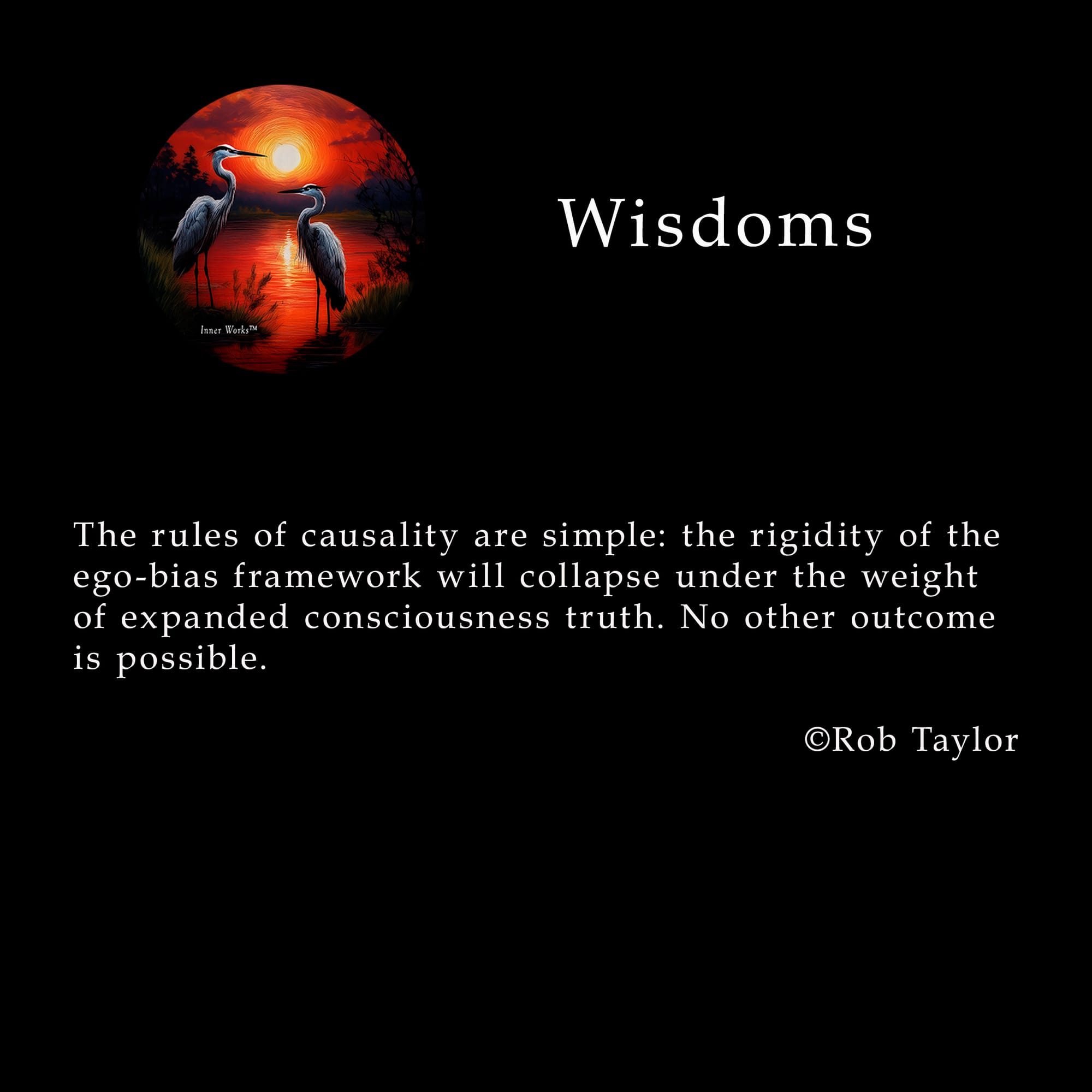Causality The wisdom of cause and consequence Rob Taylor October 20, 2025 – 1 min read Share this post Share this post Written by Rob Taylor Rob Taylor is a certified metaphysics and consciousness coach, practitioner, author, poet, and photographer. Explore Inner Works to learn more. "In the time-space between heartbeats, everything will change." Rob Taylor ©2025 Comments Wisdoms Like a Flower The blossoming of consciousness By Rob Taylor • 1 min read Wisdoms Radiate Understanding the connection By Rob Taylor • 1 min read Wisdoms Fluency The unspoken language By Rob Taylor • 1 min read Wisdoms Like a Flower The blossoming of consciousness By Rob Taylor • 1 min read Videos Slow It Down Give yourself permission By Rob Taylor • 1 min read Poetry Six a.m. Caffeine Writer's morning ritual By Rob Taylor • 3 min read Wisdoms Radiate Understanding the connection By Rob Taylor • 1 min read Consciousness Practical Consciousness, Part 4 Inner dialogue without conflict By Rob Taylor • 6 min read Wisdoms Fluency The unspoken language By Rob Taylor • 1 min read
