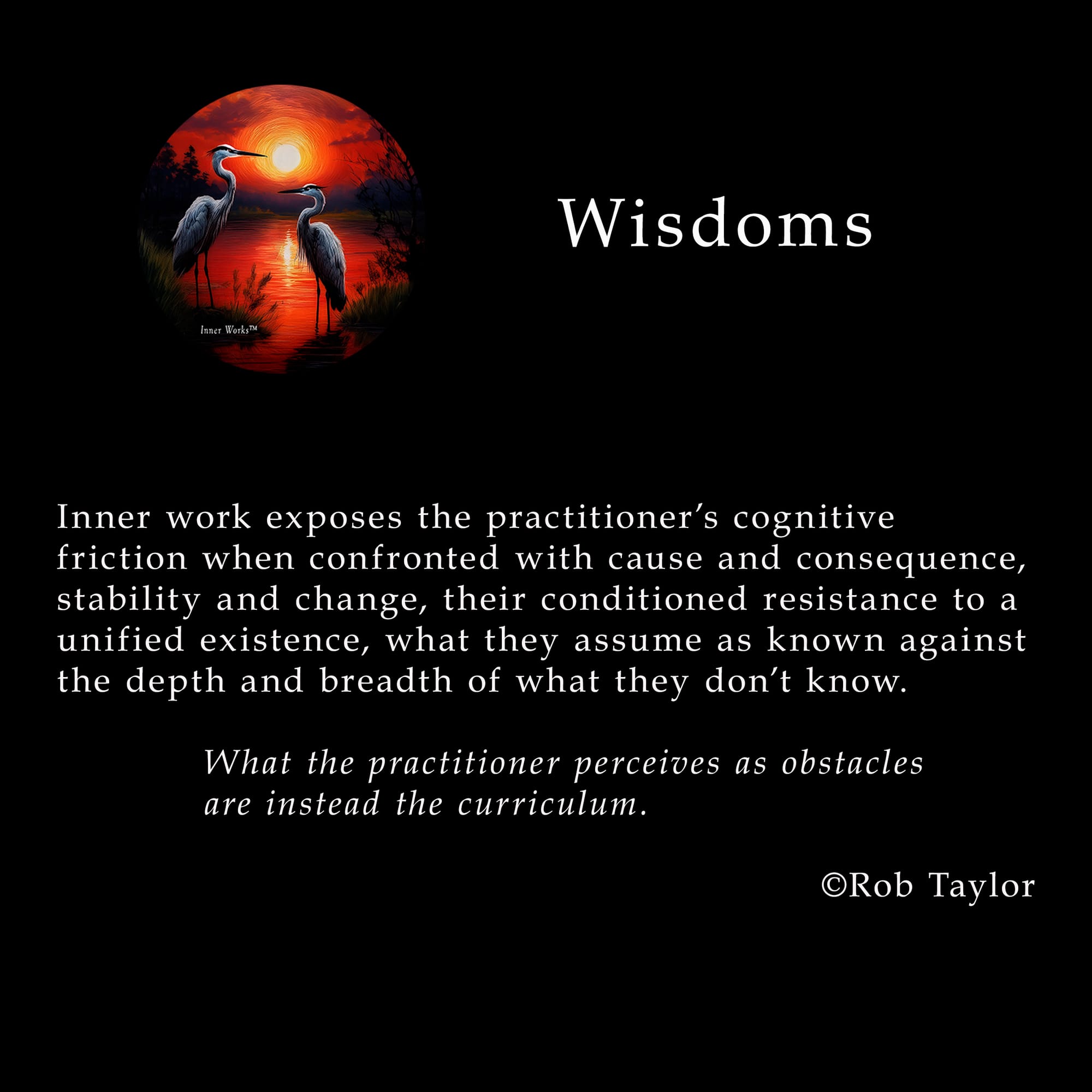 Conditioned Resistance When assumptions meet reality Rob Taylor March 02, 2026 – 1 min read Share this post Share this post Written by Rob Taylor Rob Taylor is a certified metaphysics and consciousness coach, practitioner, author, poet, and photographer. Explore Inner Works to learn more. "In the time-space between heartbeats, everything will change." Rob Taylor ©2025 Comments Wisdoms Satisfy the Hunger It's the experience, not the concept By Rob Taylor • 1 min read Wisdoms Brushstrokes The artist and the scientist By Rob Taylor • 1 min read Wisdoms I Do Not Pretend The first expression By Rob Taylor • 1 min read Newsletter Membership Update Latest information By Rob Taylor • 1 min read Poetry Masterpiece Kintsugi soul poem By Rob Taylor • 1 min read Wisdoms Satisfy the Hunger It's the experience, not the concept By Rob Taylor • 1 min read Wisdoms Brushstrokes The artist and the scientist By Rob Taylor • 1 min read Consciousness Consciousness Meditation, Part 5 Presence meditation guide By Rob Taylor • 5 min read Wisdoms I Do Not Pretend The first expression By Rob Taylor • 1 min read