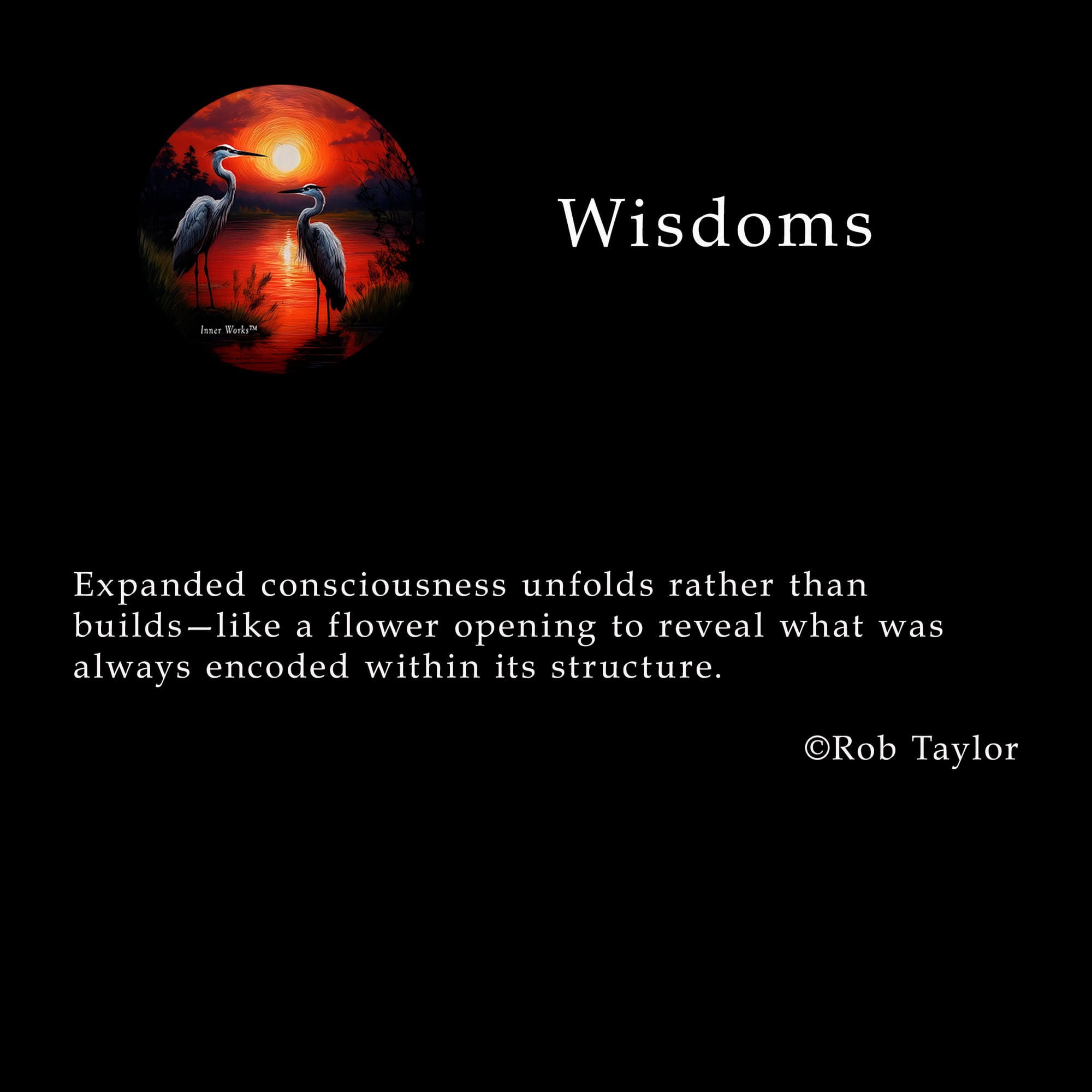 Like a Flower The blossoming of consciousness Rob Taylor November 24, 2025 – 1 min read Share this post Share this post Written by Rob Taylor Rob Taylor is a certified metaphysics and consciousness coach, practitioner, author, poet, and photographer. Explore Inner Works to learn more. "In the time-space between heartbeats, everything will change." Rob Taylor ©2025 Comments Wisdoms Radiate Understanding the connection By Rob Taylor • 1 min read Wisdoms Fluency The unspoken language By Rob Taylor • 1 min read Wisdoms Danced with Fear Fear as a Companion By Rob Taylor • 1 min read Videos Slow It Down Give yourself permission By Rob Taylor • 1 min read Poetry Six a.m. Caffeine Writer's morning ritual By Rob Taylor • 3 min read Wisdoms Radiate Understanding the connection By Rob Taylor • 1 min read Consciousness Practical Consciousness, Part 4 Inner dialogue without conflict By Rob Taylor • 6 min read Wisdoms Fluency The unspoken language By Rob Taylor • 1 min read Poetry One False Step Poverty's Children By Rob Taylor • 1 min read